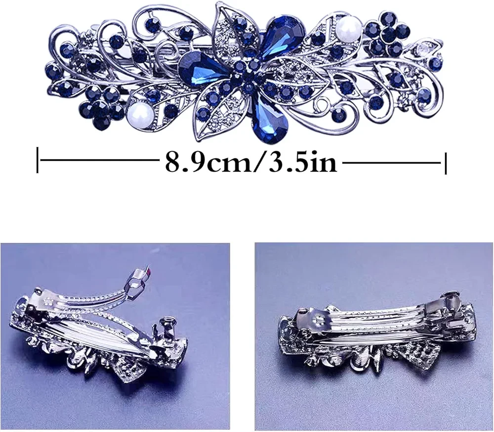 【High-quality Materials】French hair clips are made of rhinestones, electroplated copper and metal, and shining, doesn't pull your hair, the shiny sequined surfaces make the hairpins look delicate and beautiful.