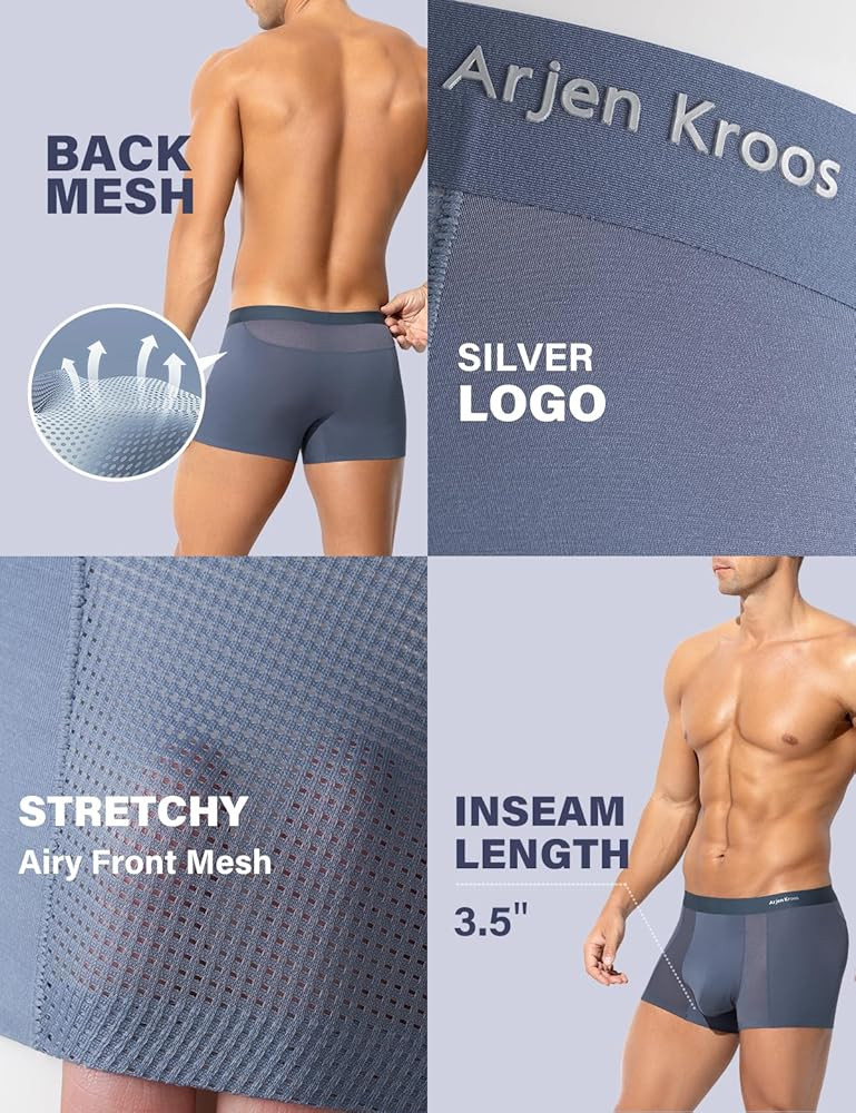 Arjen Kroos Mens Boxer Briefs Sexy Modal Mesh Underwear with Pouch Moisture Wicking Breathable Trunks 4 Pack