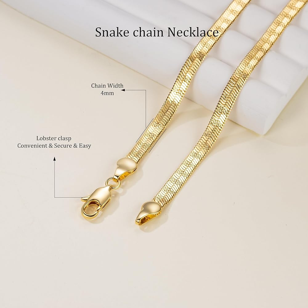 Audrey Store 14K Gold Chain for Women 14K Gold Necklaces for Women Trendy Non Tarnish Golden Necklace Mens Golden Chains Necklace Starry Touch, 4mm wide Endless Charm Snake Chain Necklaces 16,18,20,22