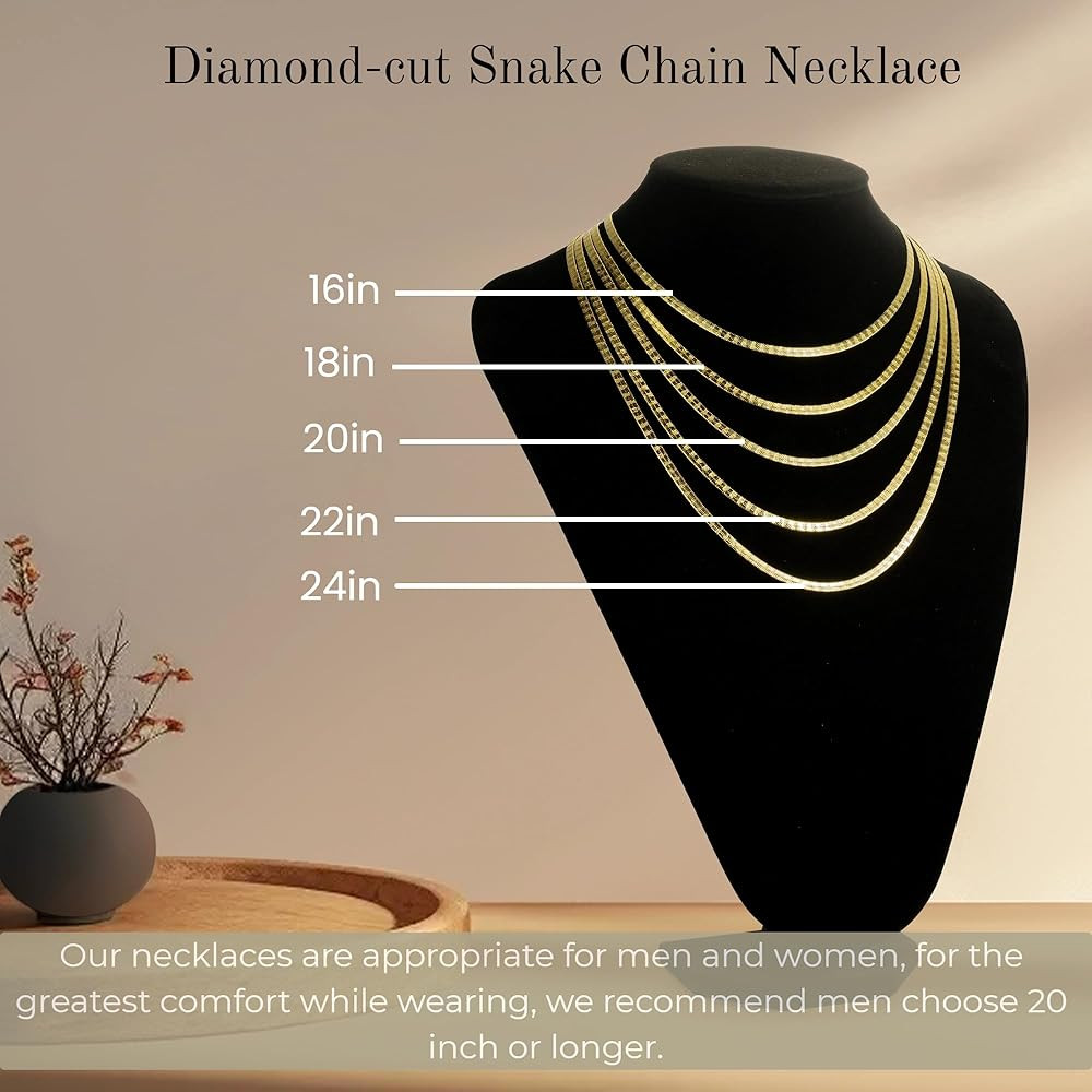 [STAY TOUCH, ENDLESS CHARM] Not your ordinary snake necklace for womens necklaces trendy. Tiny engraved patterns on this non tarnish gold necklace mens gold plated chain necklace catch the light like scattered stars in the night sky. Whether under bright lights or low-lit settings, this snake chain necklace brings quiet brilliance to your look