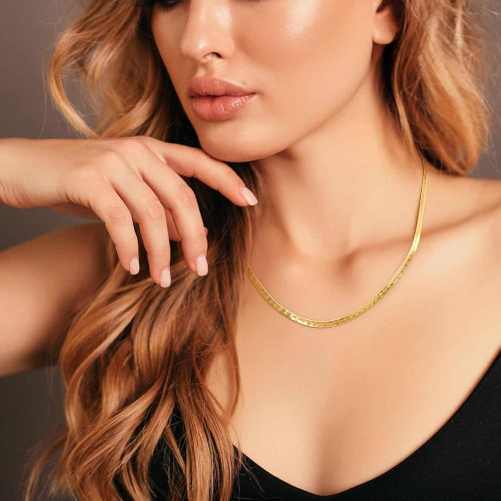 [LENGTH, YOUR WAY] Five lengths of this chunky gold necklace for women, endless possibilities. Go short with 16 inches of the gold plated chain necklace women to complement a high neckline or drape a longer gold herringbone necklace for women for extra allure with low-cut styles