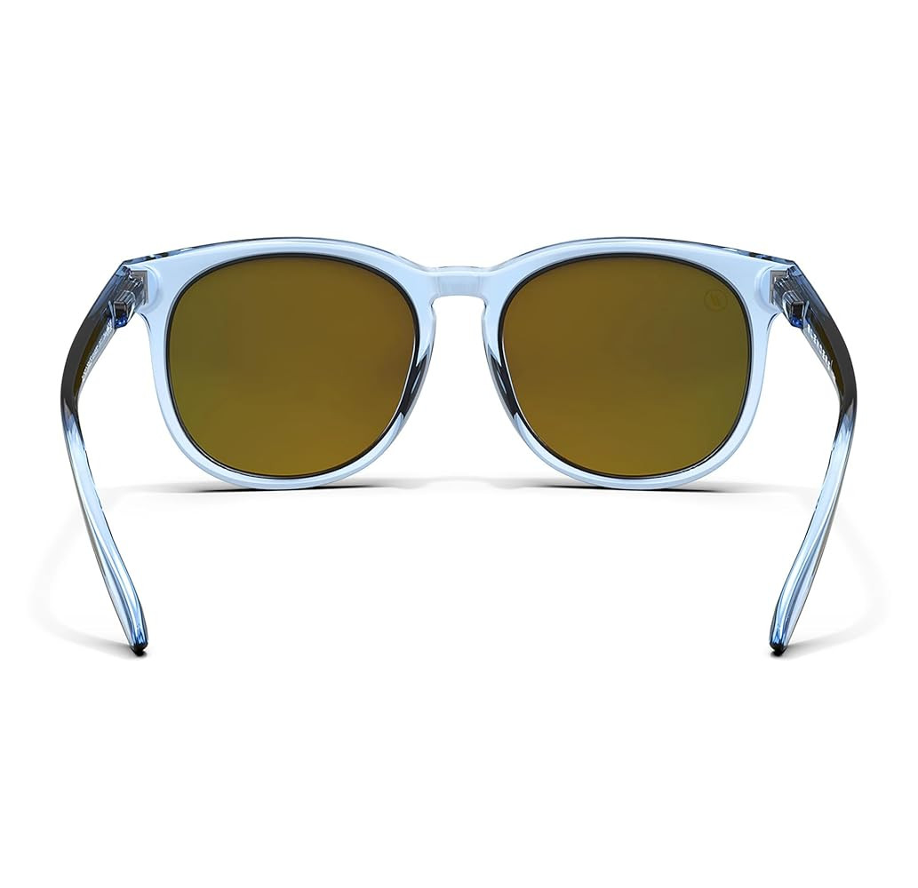 • Sensationally Sophisticated, All-the-way Fabulous: Polarized pink mirrored lenses and an ice blue gloss frame make a strong first impression that’s distinctly Blenders, designed outside-the-box to keep you perpetually doused in a dazzling sunset