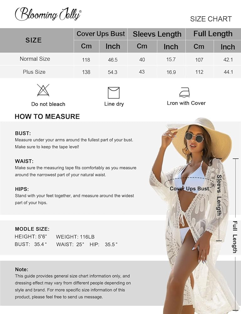 ONE SIZE FIT - Kimono for women is designed to fit most sizes (S-XXL). While it’s easy to pack and lightweight, please handle with care to avoid snagging. We recommend hand washing it with cold water and gentle soap, then air drying for long-lasting wear.