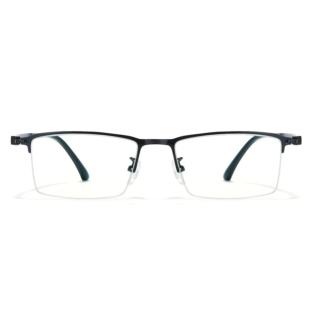 Blue Light Glasses for Men Semi Rim Glasses Crystal Lens Rimless UV Blocking Gaming Eyeglasses Black 8003