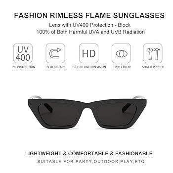 • ►【UV400 PROTECTION LENES】-Small cat eye sunglasses with high quality lenses Lenses can block 100% of both UVA and UVB radiation. Anti-glare and Anti-dazzle and UV rays.UV400 rated sunglasses is essential to protecting your eyes against long term UV damage and keeping your eyes healthy when you go out