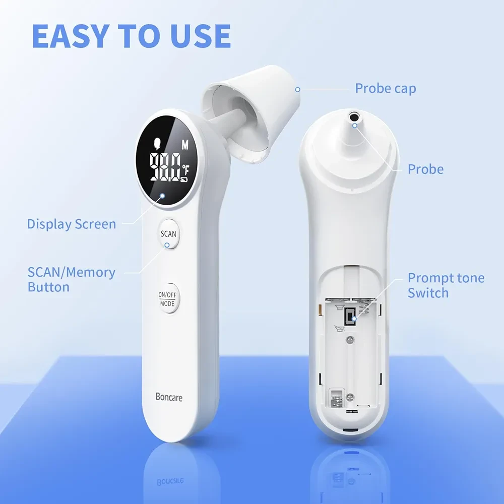Accurate Results:Our professional ear thermometer for kids offers pinpoint accuracy. For the most accurate body temperature readings, especially during fever, the ear is the optimal measuring spot. With Boncare infrared thermometer, precision is always within reach.
