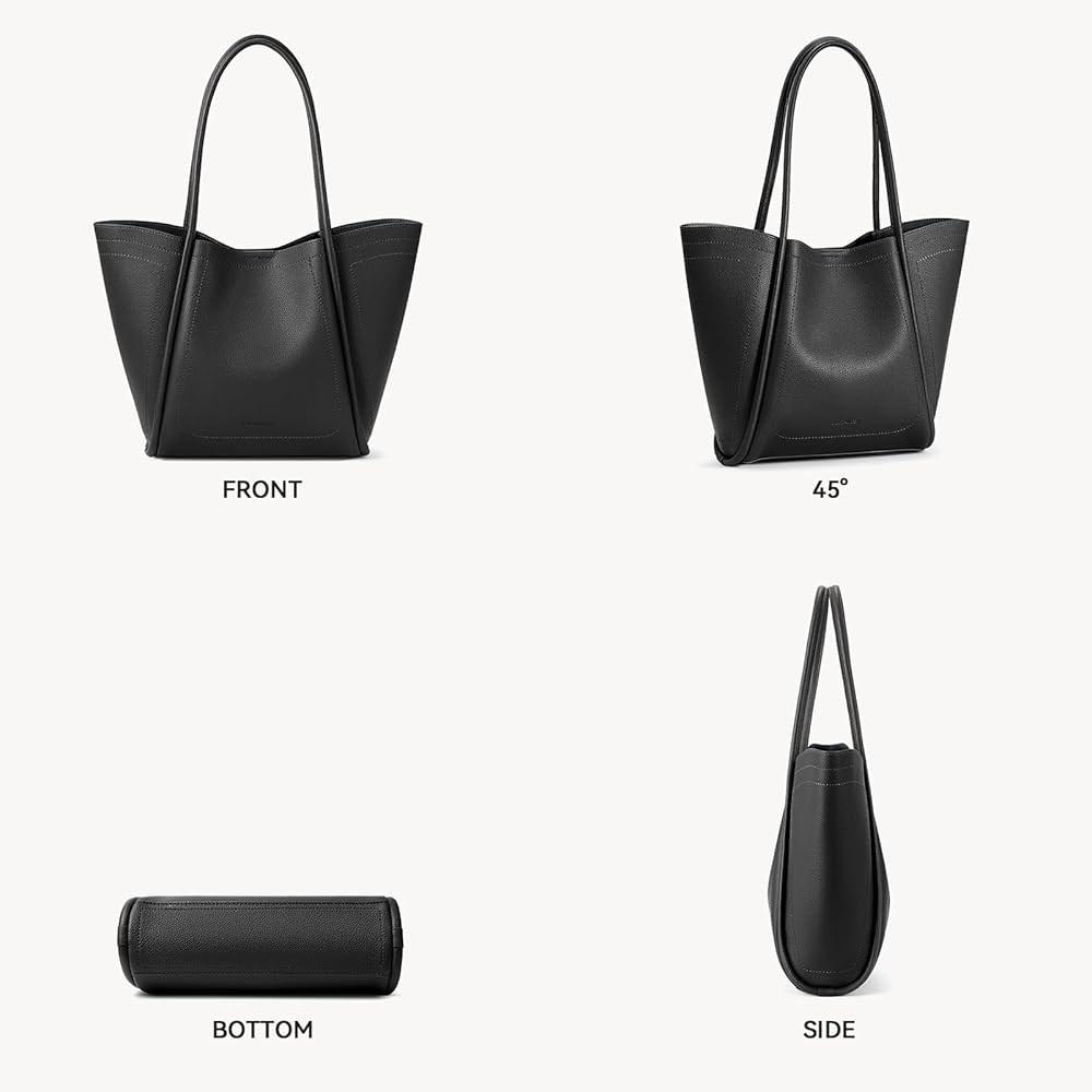 • Medium Purse for Women: The main bag of this women's handbag measures 11.4"L x 3"W x 12.2"H, which can accommodate notebooks, daily items and a 13" Laptop (Note: Not suitable for larger laptops). There are no additional compartments in the main bag, but a small makeup bag (9.84"L x 4.3"W x 7.09"H) is included, which can be used to store makeup, keys, glasses case, and keep things organized