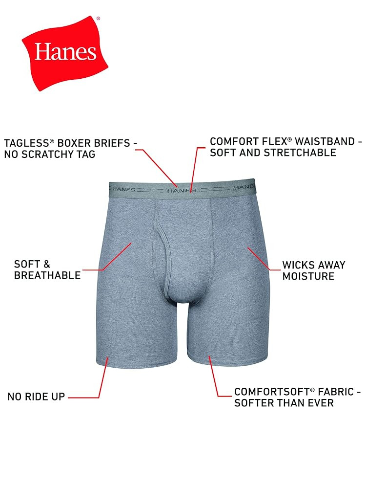 • COTTONY SOFT - Our men's boxer briefs are made from cotton or a cotton-rich blend (depending on the color) that's soft and moves with you.