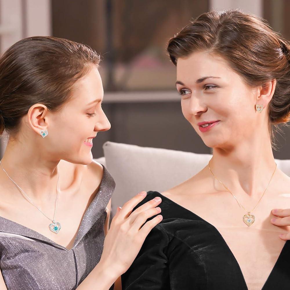 CDE Forever Love Heart Necklaces for Women, Wedding Anniversary, Birthday Mothers Day Gifts for Mom, Mother, Wife, Girlfriend, S925 Silver Jewelry with Birthstone Pendant