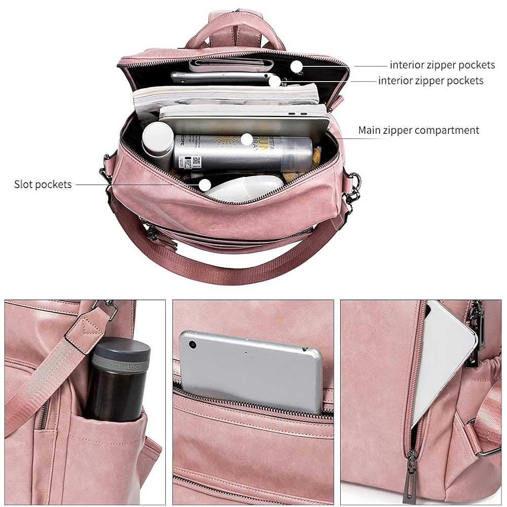 • Convertible Carrying Ways: The bag can be used as shoulder bag or backpack. 1 back zipper pocket for security and privacy. Top double U external zippers are designed for opening in two directions to have a quick access to your items.