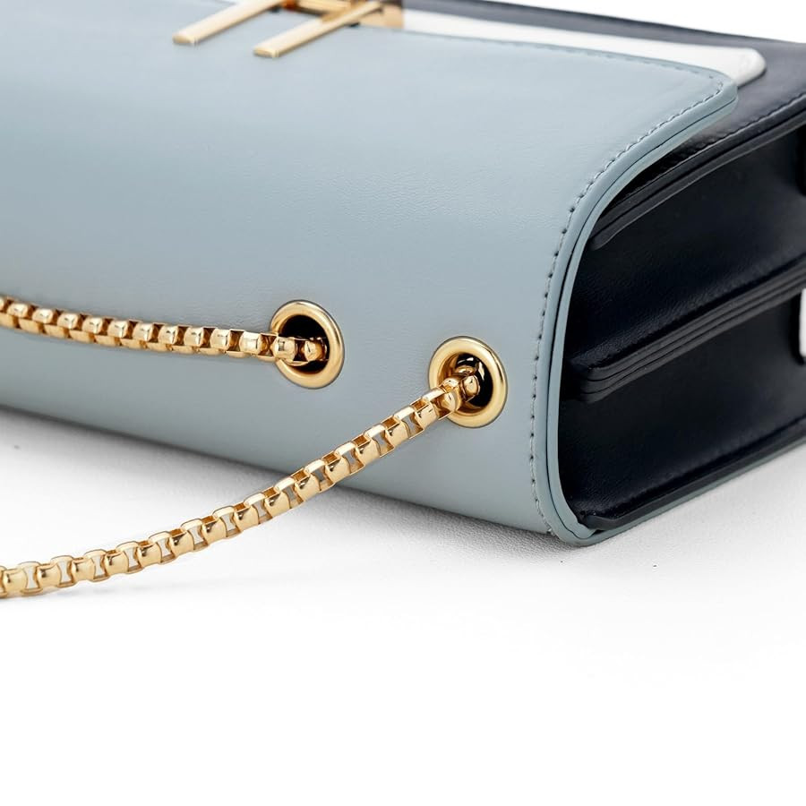 TRENDY & FASHION DESGIN : Color-block faux leather crossbody bag looks chic with any outfit. Exquisite hardware decoration with turn lock closure keeps all valuables safe.