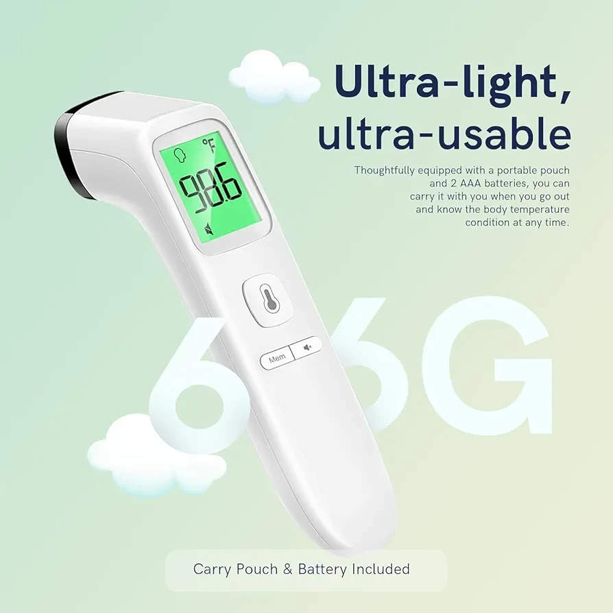 DUAL MODE & MULTIPLE USES: Viproud Thermometer is an all-in-one super practical thermometer - with forehead mode & object mode, capable of measuring forehead, room and food temperature; 35 sets of memory storage; one-touch mute; ℃/℉ switchable; fever warning and 30 seconds auto shut-off function, which is designed for all ages