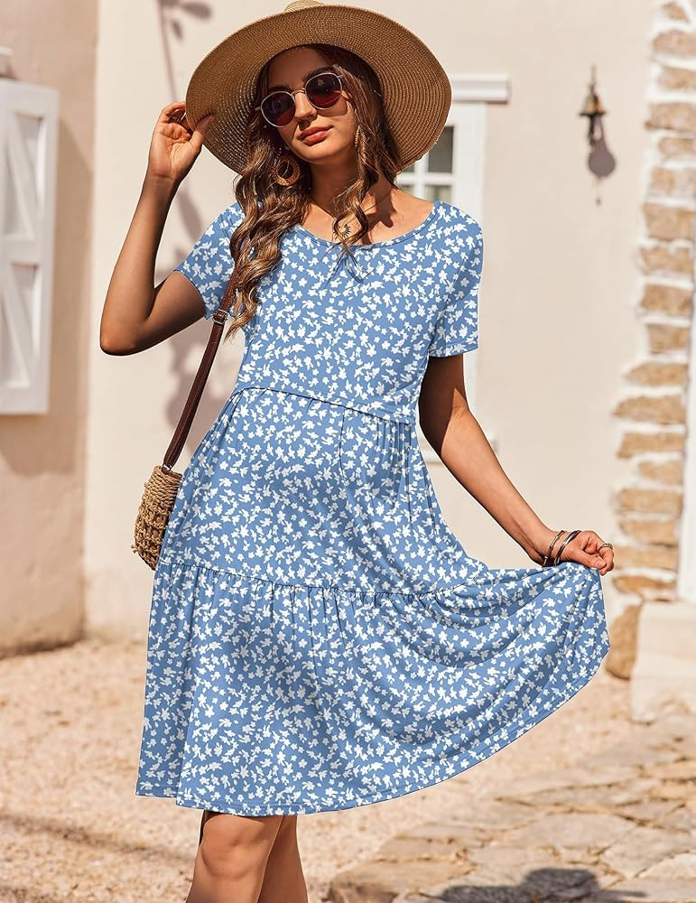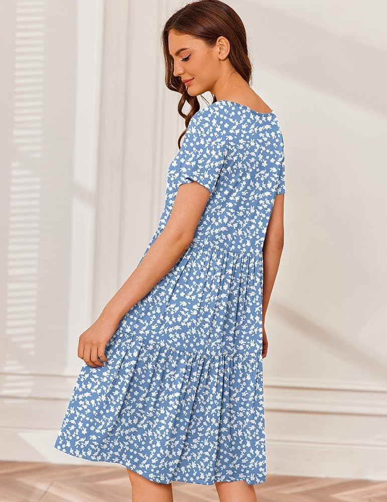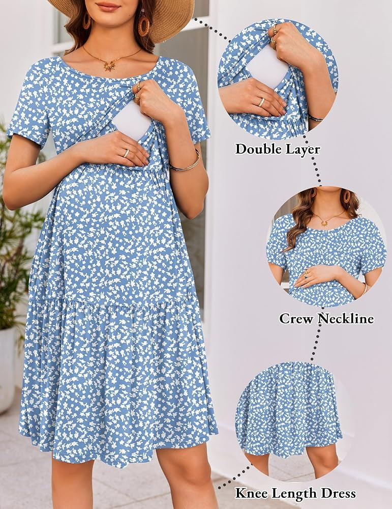 Classic crew neck design, short sleeve, loose fit and chic maternity summer dress, flattering on all body types,which also suit for wearing when you are postpartum.