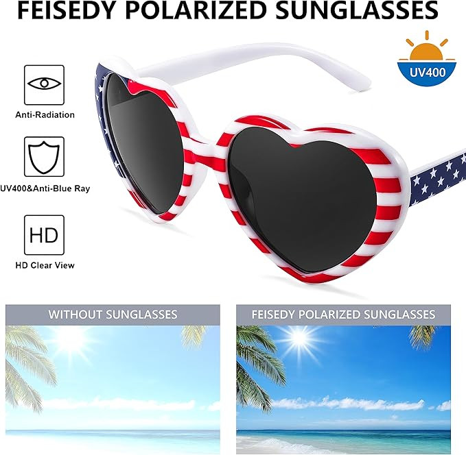 • Protect Your Eyes - Wearing these heart-shaped sunglasses will not only make you look stylish, but it will help keep your eyes healthy and protect your eyes from the sun even on the brightest of days. Polarized lenses reduce intense glare and provide vivid color vision, ensuring perfect vision for any occasion.