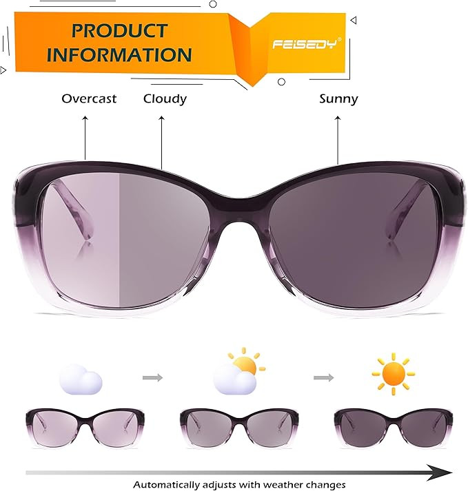 FEISEDY Polarized Women Sunglasses Retro Shades Photochromic Lens Sparkling Crystal Sunglasses UV400 Protection B0144