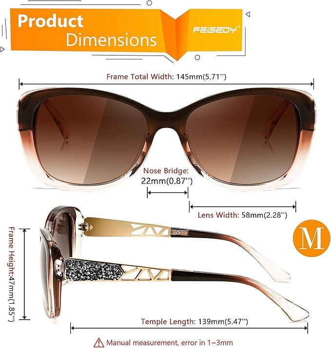 • 【UV400 PROTECTION LENS】Women fashion sunglasses.We use polarized lenses, which can effectively prevent the exposure of ultraviolet rays to the eyes.In the sunlight, the field of vision is clearer and the eyes are more comfortable.
