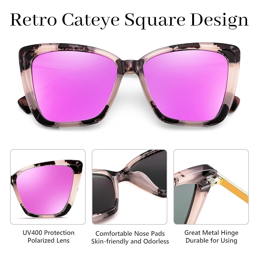 • [Fashion Cateye Design] This classic sunglass is stylish and face-flattering. Oversized cateye sunglasses will leave a striking and lasting impression. This is a must have accessory for someone seek for fashion and elegance.