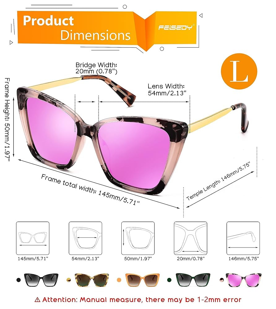 • [Suitable for Various Occasions] These FEISEDY sunglasses are brilliant existence in various occasion like shopping, traveling, vacation, photos, beach and party. You can choose them for daily wear all year round and for fashion accessories.