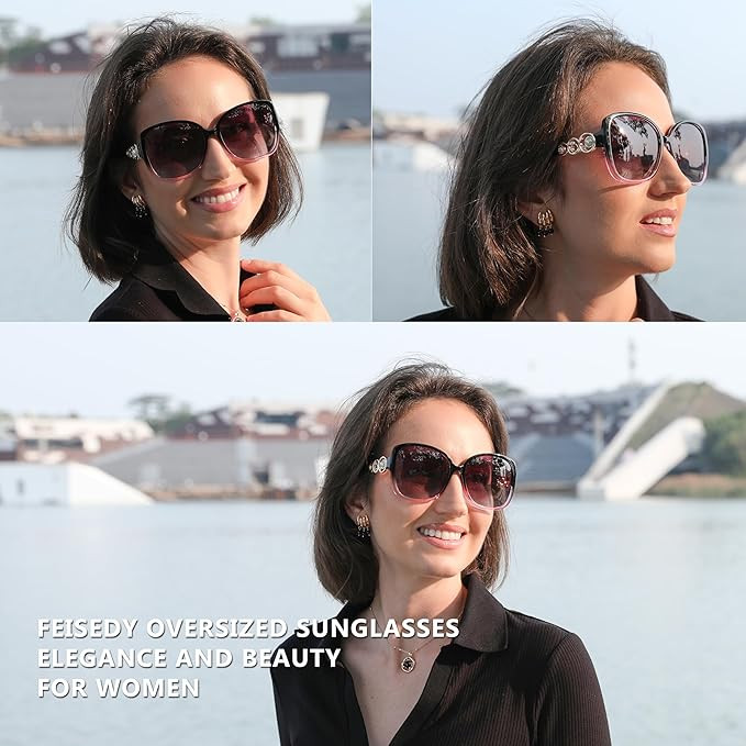 • [Fashion Women Sunglasses] This oversized sunglasses designed specifically for women are both fashionable and versatile, enhancing your look. With traditional frames and a variety of lens colors to choose from, you can easily pair these women's sunglasses with your wardrobe.