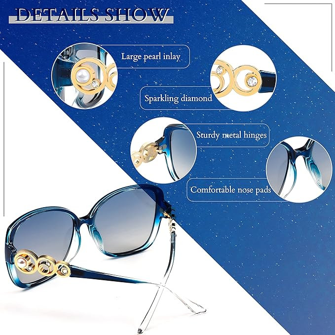 • [Fashion Women Sunglasses] This oversized sunglasses designed specifically for women are both fashionable and versatile, enhancing your look. With traditional frames and a variety of lens colors to choose from, you can easily pair these women's sunglasses with your wardrobe.