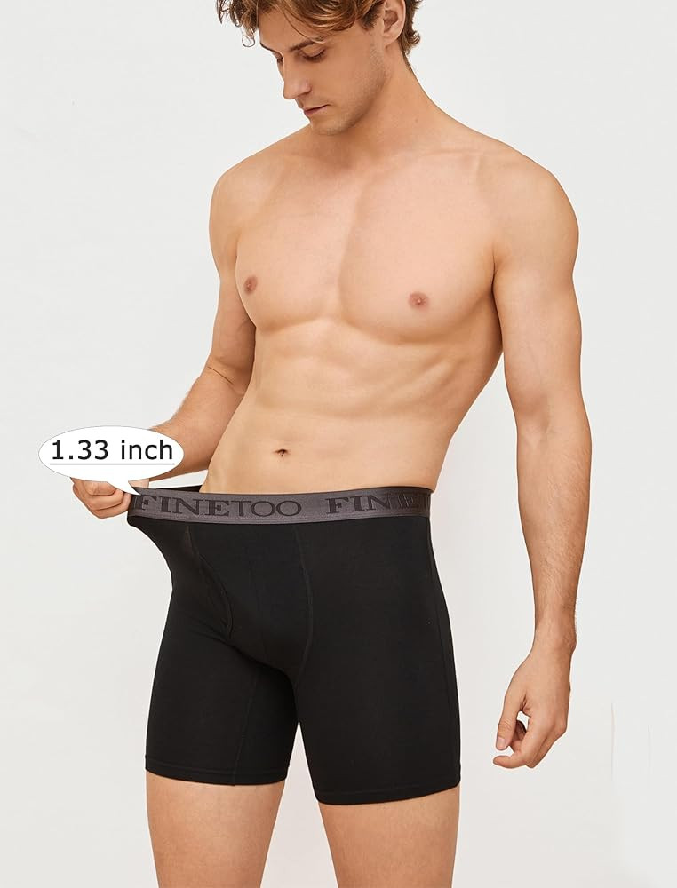 FINETOO Mens Underwear Cotton Boxer Briefs Soft Comfort Boxers Moisture-Wicking Breathable Underwear for Men Pack 3