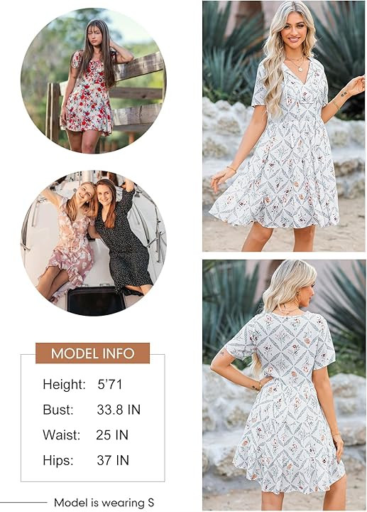Design: mini dresses for women featured with a sexy v neck and adjustable drawstring, summer dresses for women 2025 are also pretty and unique with light floral pattern. Also the bohemian dress designed for a flowy and swing style, perfect for spring and summer