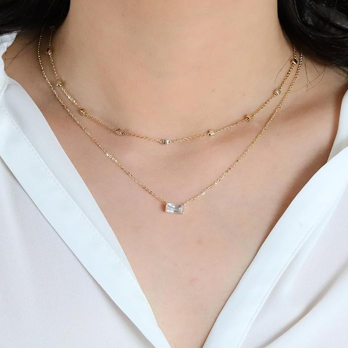 Foxgirl Lariat Gold Necklace for Women, Dainty Long Necklace 14k Gold Plated/Silver Y-Shaped Pendant Necklace Trendy Layered Cz Beaded Chain Drop Necklaces Simple Gold Jewelry For Women Gift