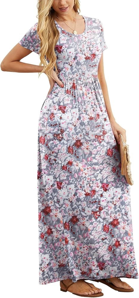 GRECERELLE Women's Short Sleeve Maxi Dresses Casual Long Dresses with Pockets