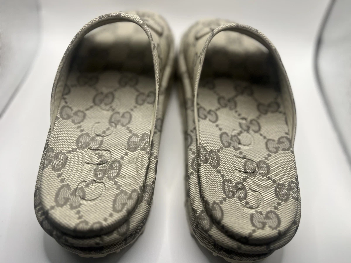 GUCCI INTERLOCKING G SUPREME SLIDE G 10/US 10.5 BRAND NEW GUARANTEED AUTHENTIC INCLUDES ORIGINAL BOX AND DUSTBAGS PLEASE FEEL FREE TO REACH OUT WITH ANY QUESTIONS