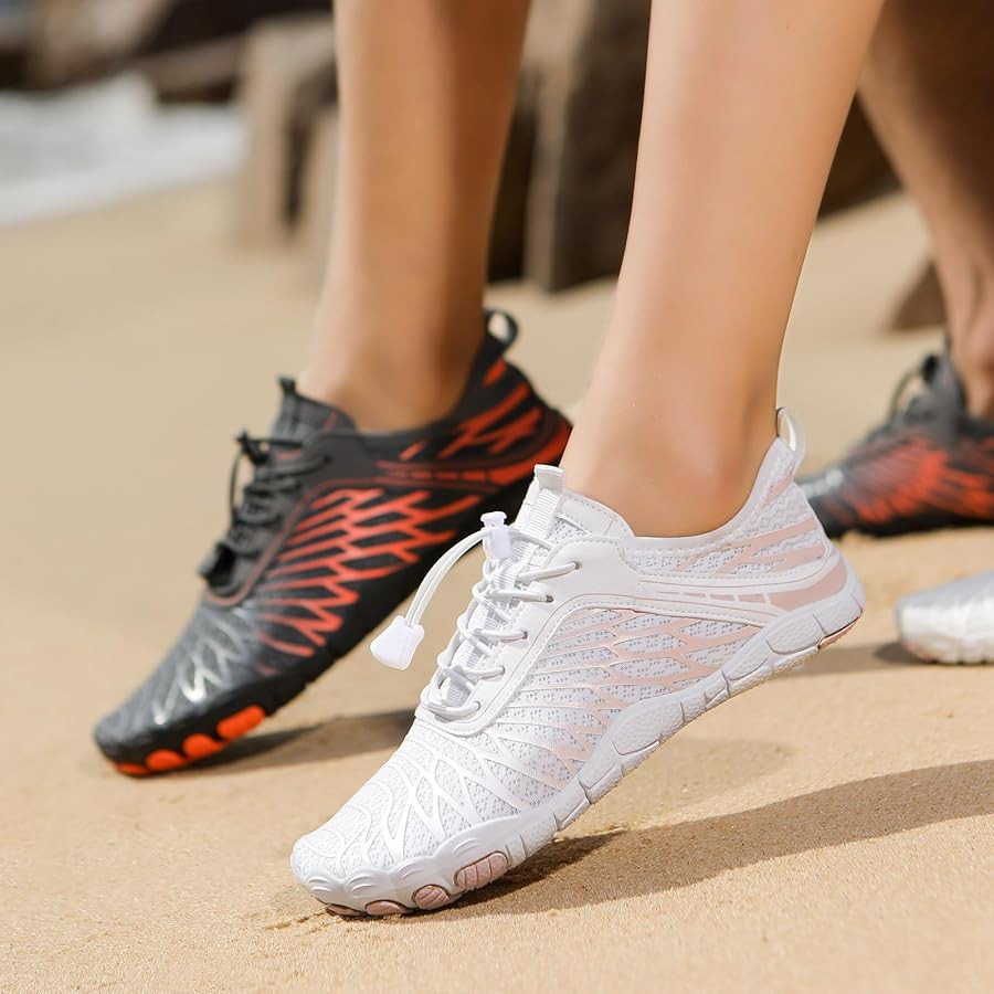 • 【Ergonomic Five Finger Design】The Water Shoes adopt a rubber sole that is anti slip and wear-resistant, and adopt a five toe design that conforms to ergonomics. The force points are more dispersed, and the sole is lightweight and thin, making it easier to disperse impact force and reduce the burden during walking.Walking is more relaxed and comfortable