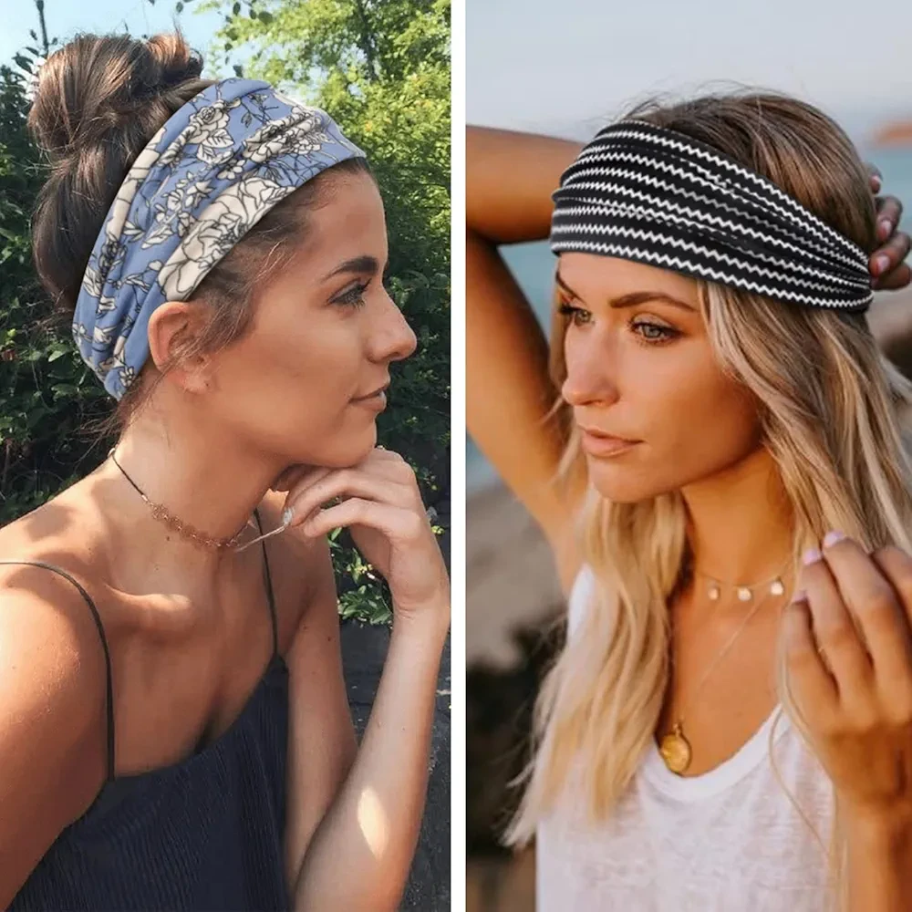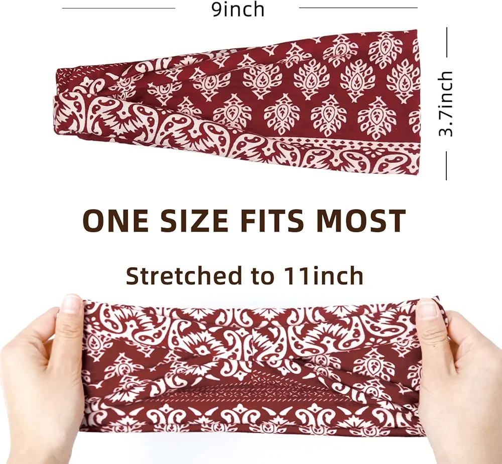 • 2 in 1 Versatile Boho Headbands: The womens headbands non slip are tapered to be wide on top and narrowing from the sides to the back with good stitching on the closure. The hair bandanas headbands look good with women who have short hair or long hair. You're able to wear these no slip headband for women as wide thick headbands or thin hair bands. Wide enough fit on a big forehead and cover front head hair loss.