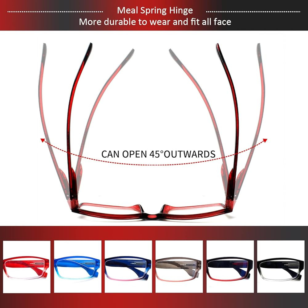 • CONVENIENT SET: 6 pairs Blue Light Blocking Spring Hinge Computer reading glasses + readers soft pouch + microfiber cleaning cloth.