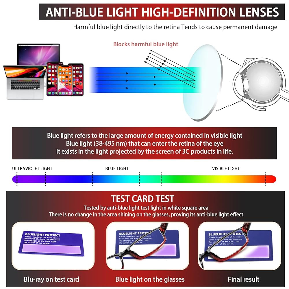 • COMPUTER READING GLASSES:Computer Readers for Women Men Block blue light, suitable for people who use mobile phones and computers for a long time.