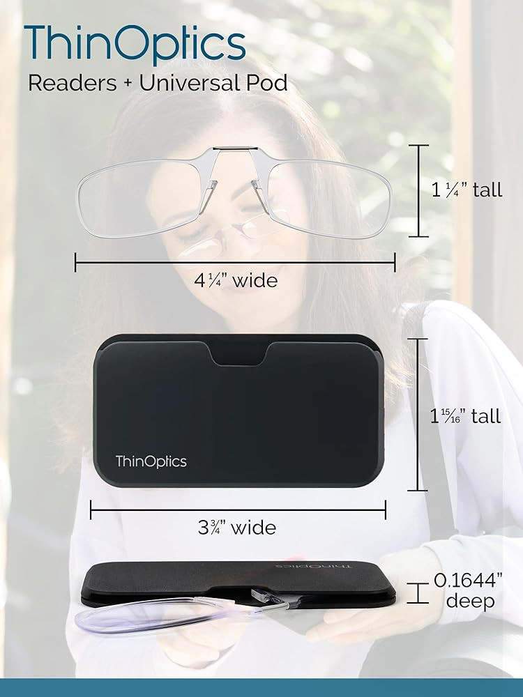SUPERIOR COMFORT & UNIVERSAL FIT: Designed in Silicon Valley, ThinOptics Readers have been meticulously crafted to fit a wide range of nose types, for both men and women. Experience the feather-light yet durable construction that gently grips your nose, providing a perfect, comfortable fit that you can adjust up or down to your liking. They are so lightweight, you will almost forget they are there!