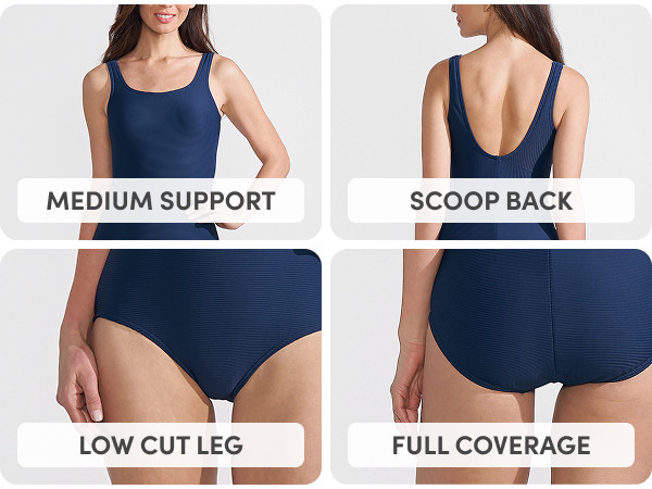 Flattering Coverage: Built-in shaping smooths the waist and hips for a streamlined look; modest swimsuit with lower cut leg openings that offer enhanced coverage; ideal for women seeking a classic style that’s versatile and confidence-boosting