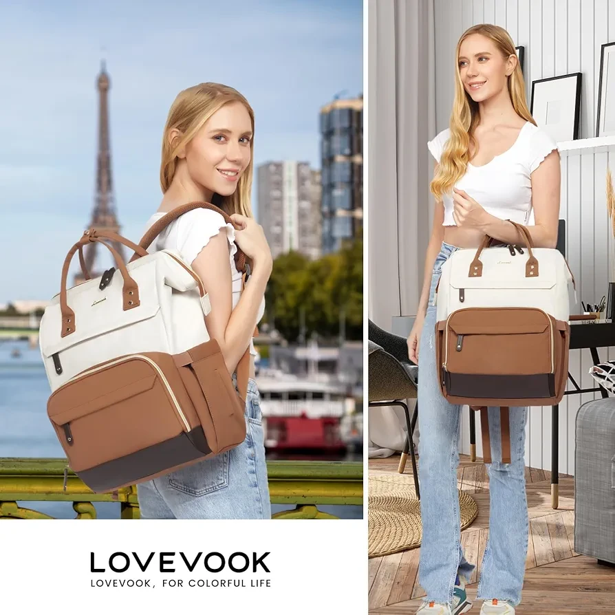 【Large Capacity Work Backpack】LOVEVOOK backpack purse for women uses a rectangular frame opening design to maintain large capacity and facilitate your quick access.