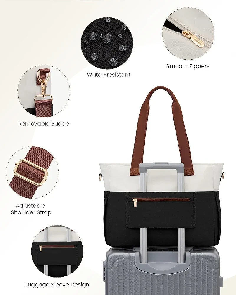 【High-Quality Materials】Made of high-quality water-resistant polyester, this work tote is durable, easy to clean, and excellent for protecting your belongings. Precision craftsmanship and smooth metal zippers ensure longevity and reliability.