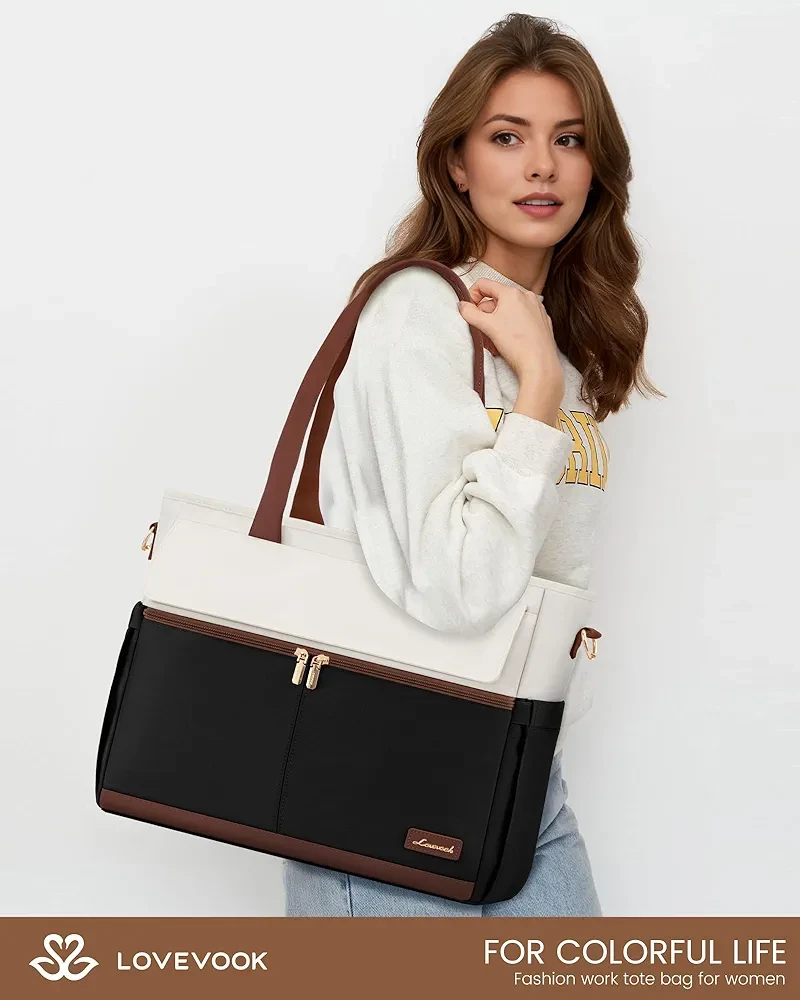【Stylish and Functional】The LOVEVOOK tote purse's vibrant, fashionable design addsa touch of style to your work. Perfect for colorful life enthusiasts, this stylish and practical work tote bag is a ideal companion for business, work and travel.