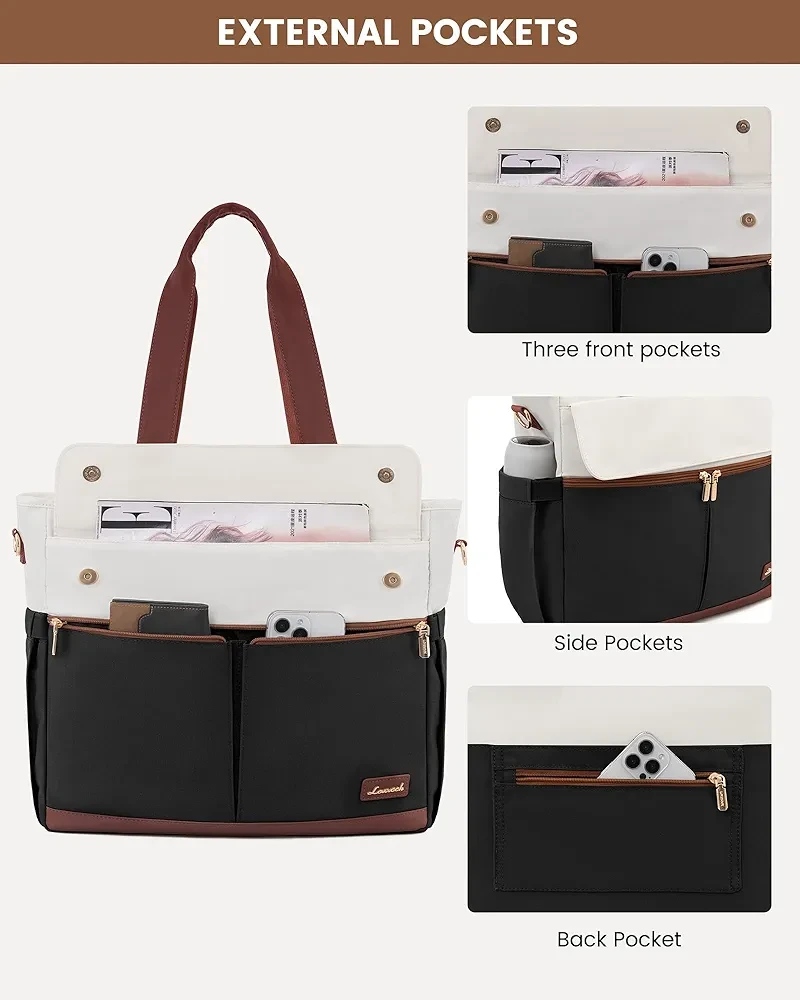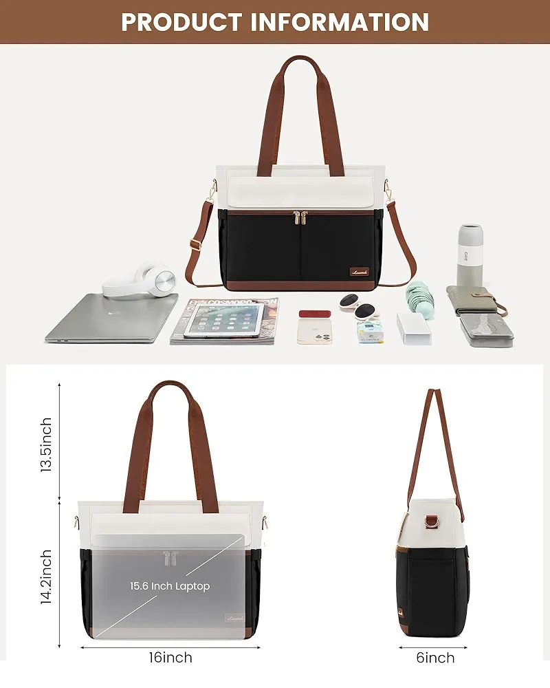 【Plenty of Space】This tote bag for women work features a large capacity to fit a 15.6-inch laptop. With 8 internal pockets including a laptop compartment, 2 mesh pockets, and 2 slip pockets, this teacher tote bag ensures easy organization of all your essentials.