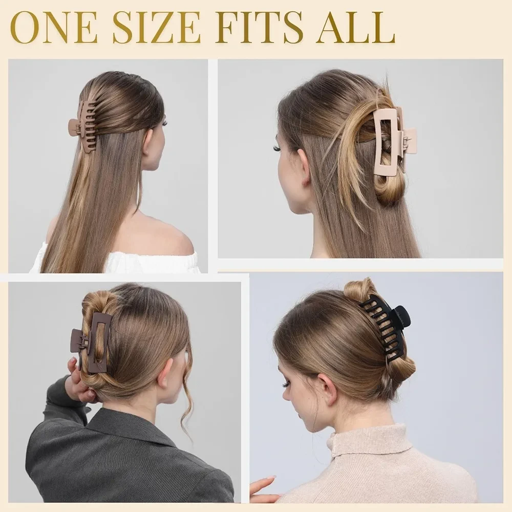 LuSeren Hair Clips for Women 4.3 Inch Large Hair Claw Clips for Women Thin Thick Curly Hair, Big Matte Banana Clips,Strong Hold jaw clips,Neutral Colors