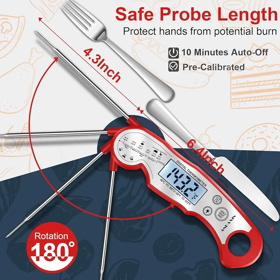 • [Backlight display] - Grilling thermometer features backlight LCD display to let you see clearly while cooking in the evening, indoors or outdoors.