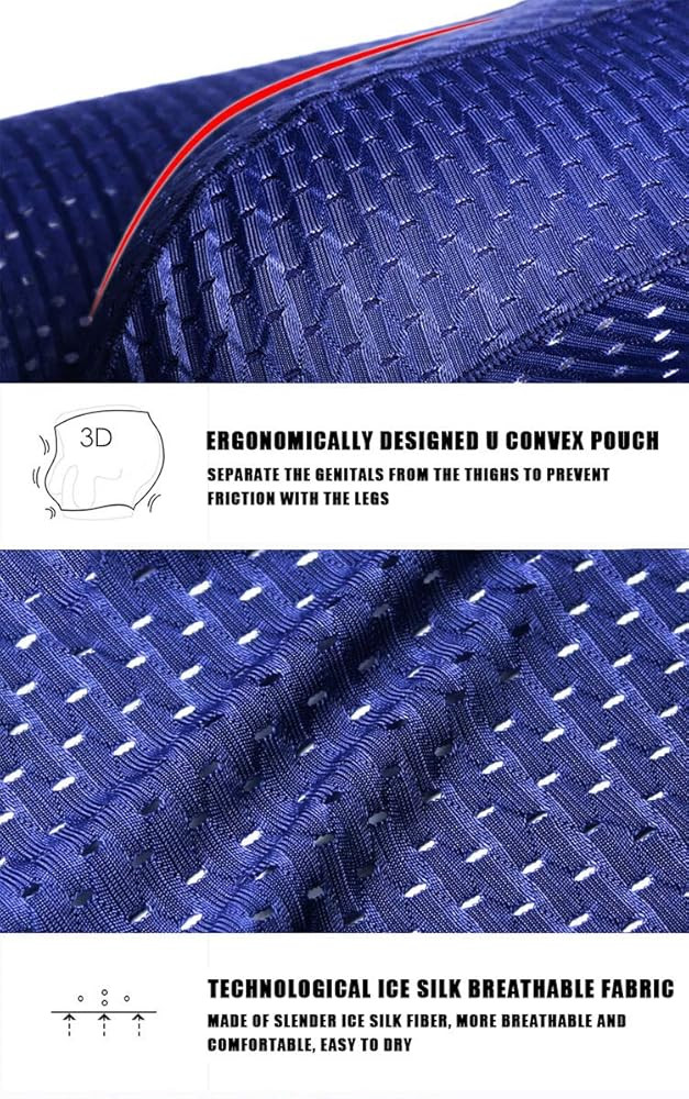 • Mens Boxer Underwear: This fabric added extra mesh design,which made the ice silk underwear became breathable underwear, Look through the picture carefully you will find a lot of small holes,ventilation holes to help keep you cool and comfort. Cool mesh fabric wicks moisture away from the skin to keep you cool and dry.