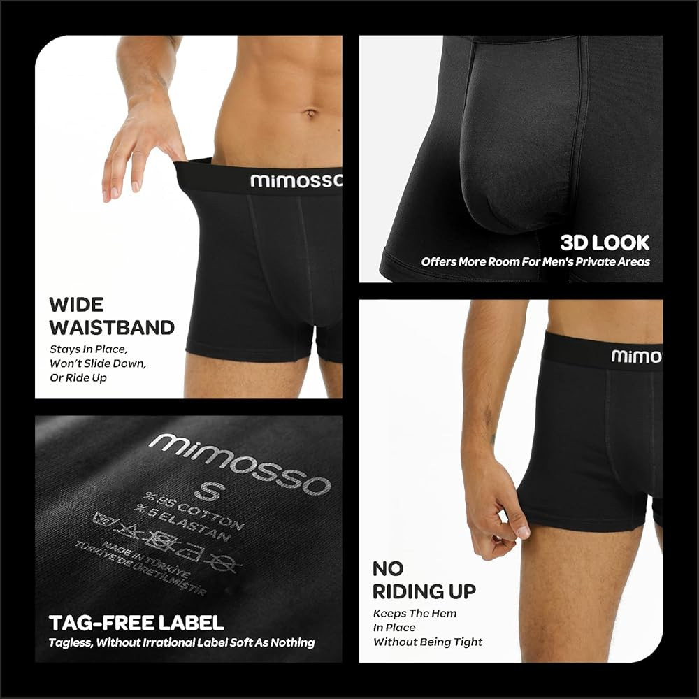 Comfortable and breathable men's boxer underwear, crafted from a blend of 48% Cotton 47% Polyester and 5% Spandex to provide optimal wearing comfort. Featuring Comfort Flex technology, these tagless briefs are designed without irritating tags, preventing any rubbing or chafing. The elastic waistband offers a perfect fit and comfortable hold, allowing freedom of movement. With a breathable, soft, and moisture-resistant fabric, they provide a fresh feel throughout the day. Made with flexible and skin-friendly materials, they are ideal for both daily wear and sports activities. This collection is perfect for those seeking both comfort and functionality