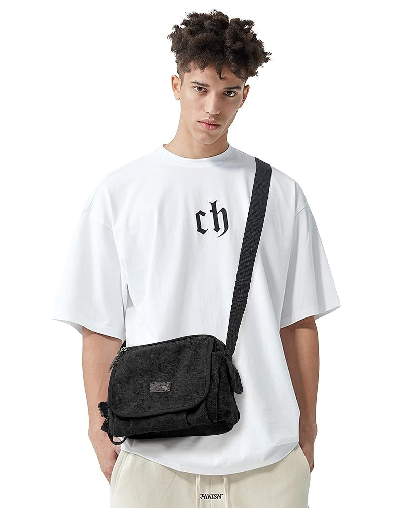 Messenger Bag for Men, Crossbody Bag Aesthetic, Water Resistant Unisex Classic Canvas Shoulder Bag