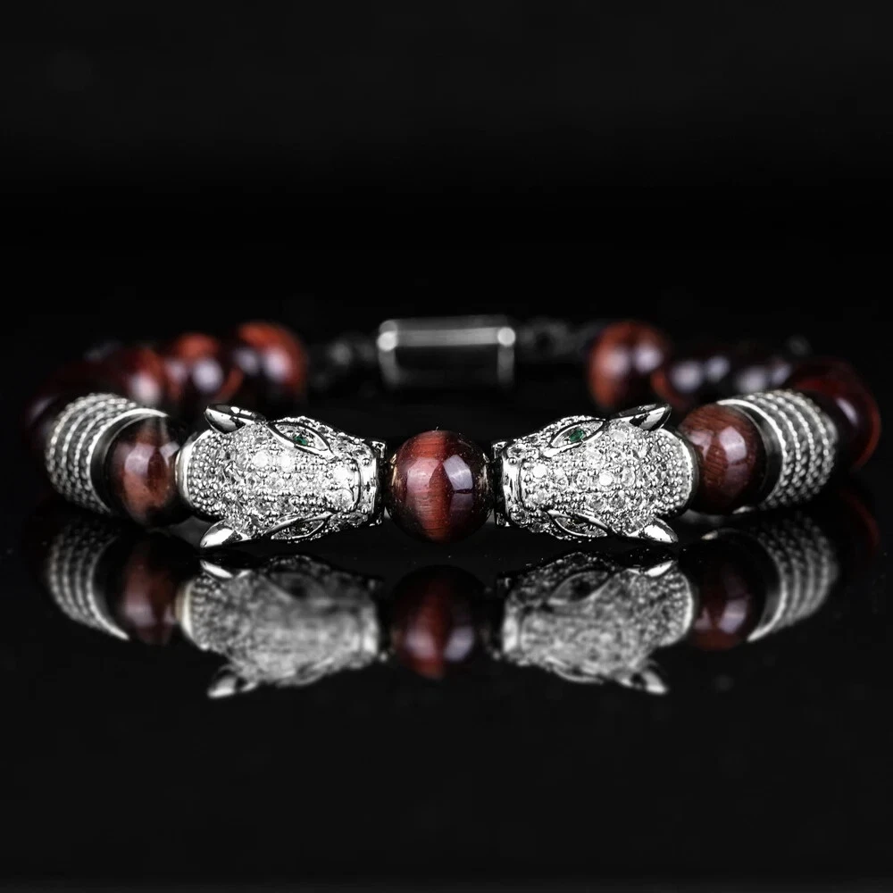 New Trendy Double Leopard head Handmade Tigers eye Bracelet Accessories For Men