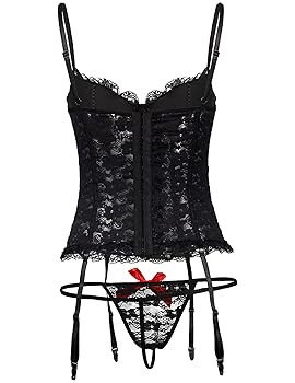 【HIGH QUALITY】: The elegant bodice set uses elastic lace and mesh, skin-friendly and breathable. 3 columns classic design hook closure, can control tummy to make a slim effect and enhance your feminine curves.