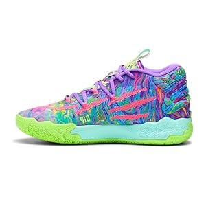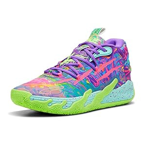 Cosmic crossovers and stellar slam dunks! A true beast from LaMelo Ball’s otherworldly PUMA Hoops lineup, the PUMA MB.03 Be You lets you turn every dribble and shot into a highlight reel moment. Powered by slime-inspired rubber wrap-ups, this iteration gives Melo’s third signature shoe a cosmic twist, so you can show off your out-of-the-world moves with confidence. The space-age PUMA Hoops tech keeps you tournament-ready and gives you all the comfort you need to shoot for the stars. Plus, the slime sole allows you to slam and slay through the four quarters and beyond. Futuristic, gravity-defying, and explosive, the PUMA MB.03 Be You makes sure you rise above the rim in no time.