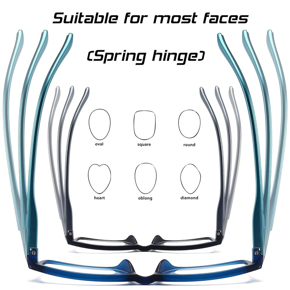 Reading Glasses Blue Light Blocking for Men Women,Rectangular Frame Computer Readers with Spring Hinge