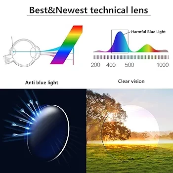 Anti Blue Light Glasses:Adopts anti-blue light lens,not only coating the surface of the lens with anti-blue light layer,but also adding blue light factor into the basic material of the lens, which can block harmful blue light more effectively