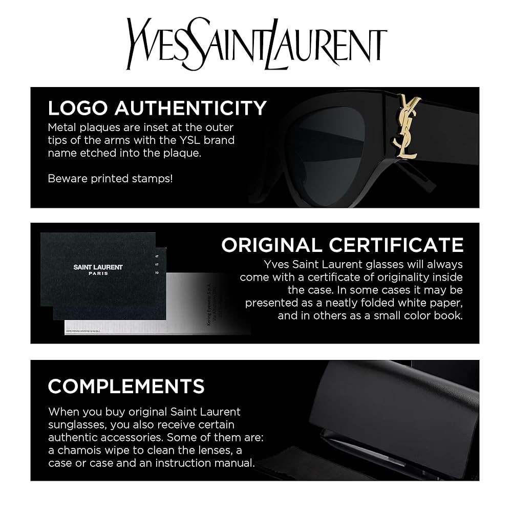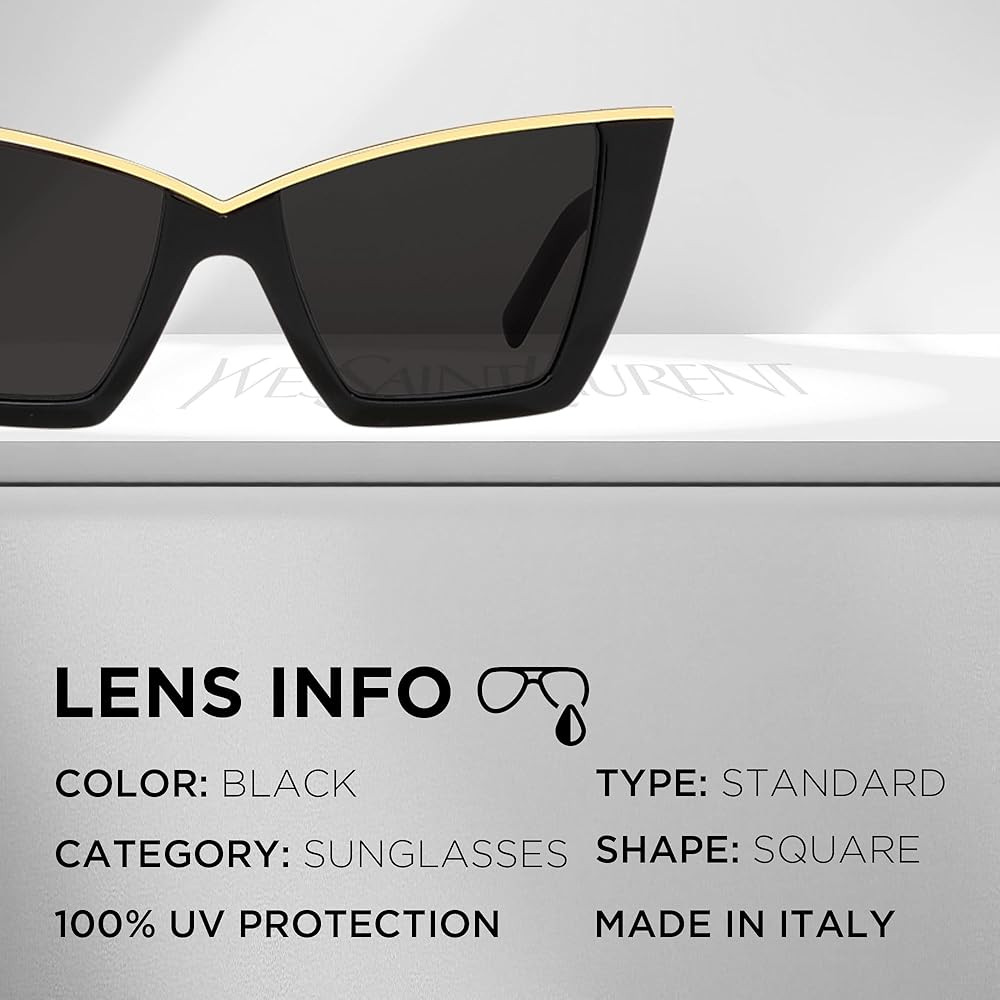 • Warranty & Variety: Indulge in versatility with these cat eye sunglasses for women, available in a variety of frame colors and lens options. Enjoy peace of mind with a 2-year international warranty, along with a YSL cleaning cloth and case.